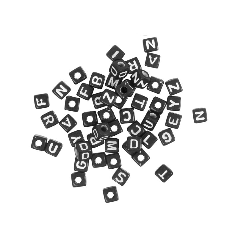 BEAD 5MM ALPHABET CUBE BLK WH 90PC