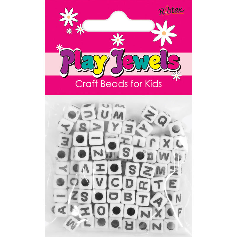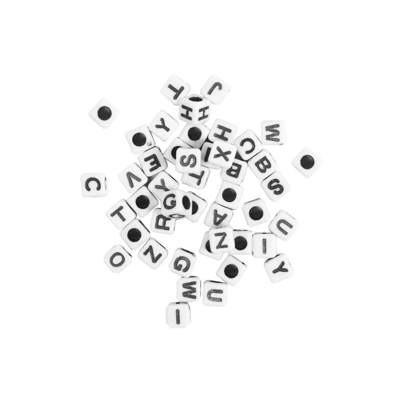 BEAD 6MM ALPHABET CUBE WH BLK 104PC