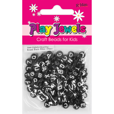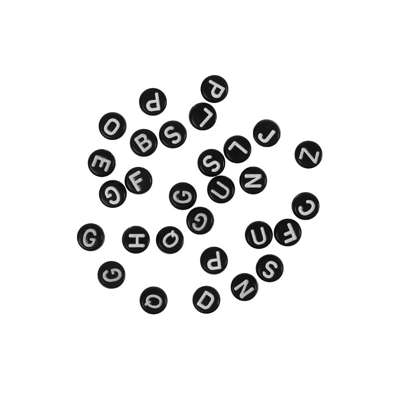 BEAD 6MM ALPHABET FLAT RND BLK WH 104PC