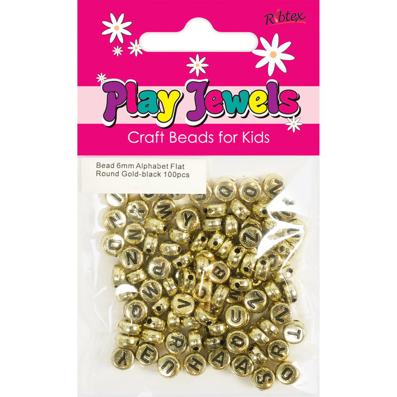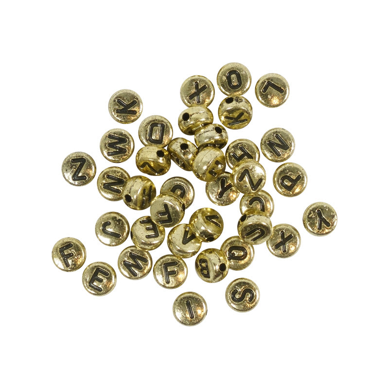 BEAD 6MM ALPHABET FLAT RND GLD BLK 100PC