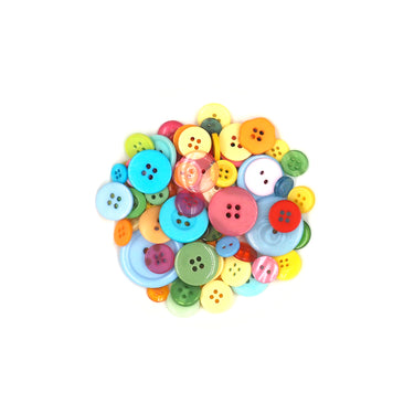 Value tub of buttons in assorted shapes and sizes. Resealable tub for easy organisation and storage. Great for all your craft projects