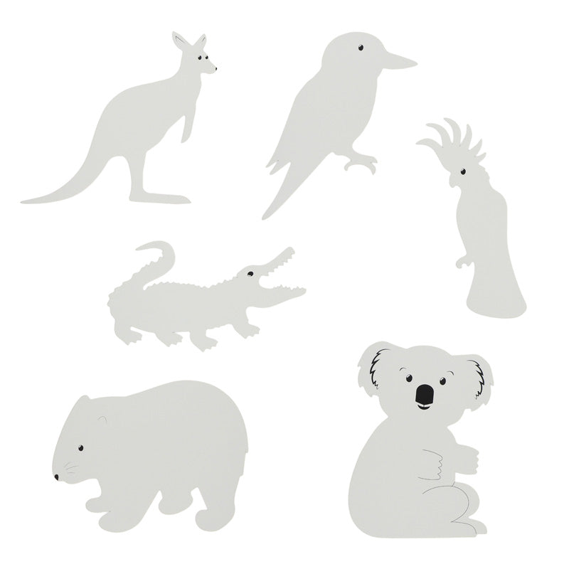 18pc Pack of Australian animal pre-cut blank cut outs. 3 of each design per pack, Cockatoo, kangaroo, Kookaburra, koala, wombat and Crocodile. FSC White card for all arts and crafts, projects and decorations. Perfect canavs to explore creativity, easy to paint, embellish, glue and collage.