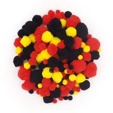 Pom-poms are fantastic for kids' art! There are so many fun and easy projects you can do. Quality poms, assorted red, black, yellow colours and sizes, Great for a wide range of crafting projectsNot suitable for children under 4 years old