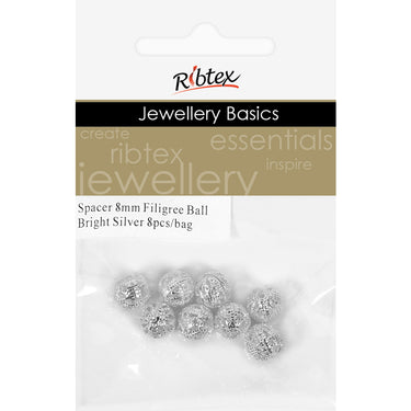JF SPACER FILIGREE BALL 8MM B SLV 8PC