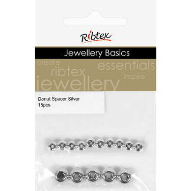 Introducing our Plain Donut Spacer set available in both small and large sizes with 15 pieces included. Made in China by Ribtex these spacers are finished in a sleek silver color. Perfect for a variety of crafting and DIY projects these spacers are a must-have for any creative enthusiast.