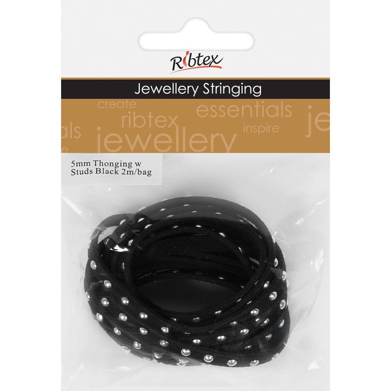 JF THONGING W RND STUD 5MM SLV BLACK 2M