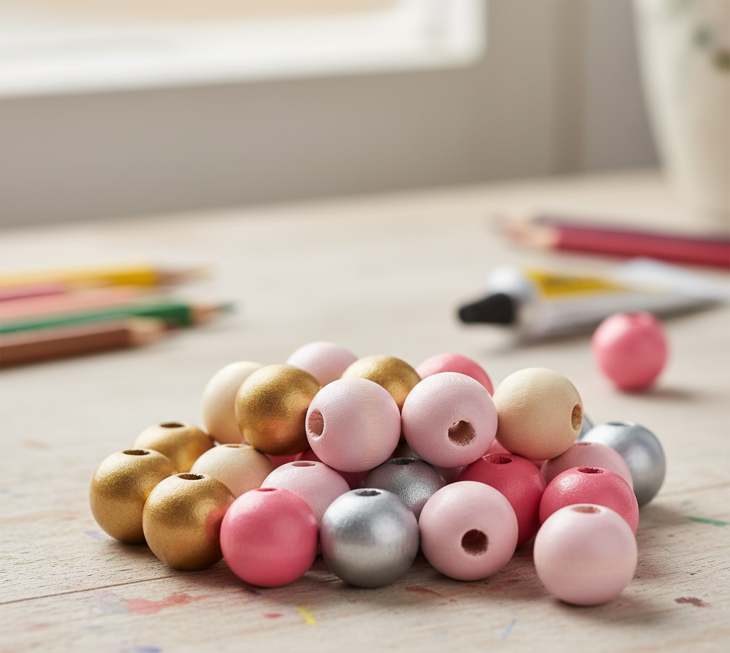 BEAD WOOD 16MM RND PINK MULTI 30PC