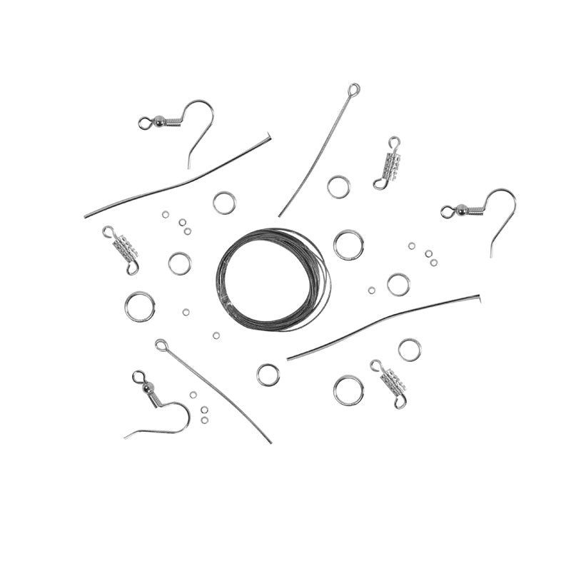 Designed with little fingers in mind, the Craft Beads for Kids range offers a wide variety of colourful and fun beads and string, catering for lots of different abilities. Colour: Brights Assorted Composition: Metal Alloy Country Of Origin: Made In China Dimensions: 10x head pins 50mm | 10x eye pins 40mm | 4x shepherds hook earrings | 2x pairs (4pcs) screw clasps | 14x 8mm split rings | 20x 6mm split rings | 100x crimp beads 1mm | 1x 2m tiger tail stringing Safety Information: Not suitable for children under 4. Please supervise younger children when using. **Despite every effort to provide accurate images of each product, actual colours and design may vary slightly due to different device screen settings