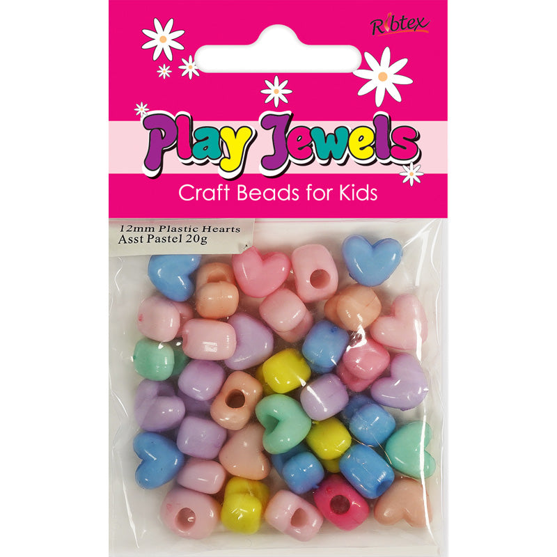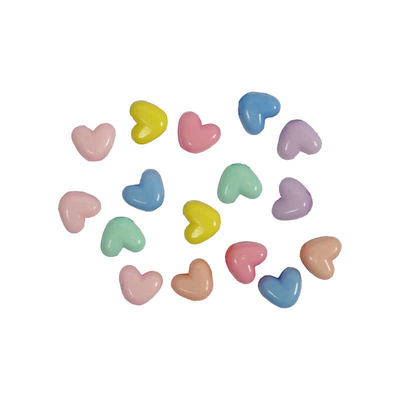 BEAD 12MM PLASTIC HEART PASTEL ASST 20GC