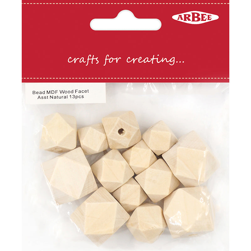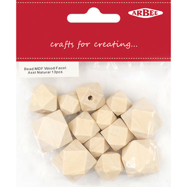 BEAD MDF WOOD FACET ASST NATURAL 13PC