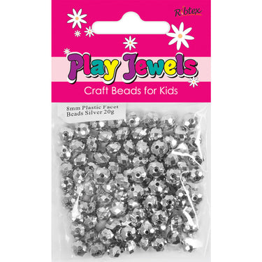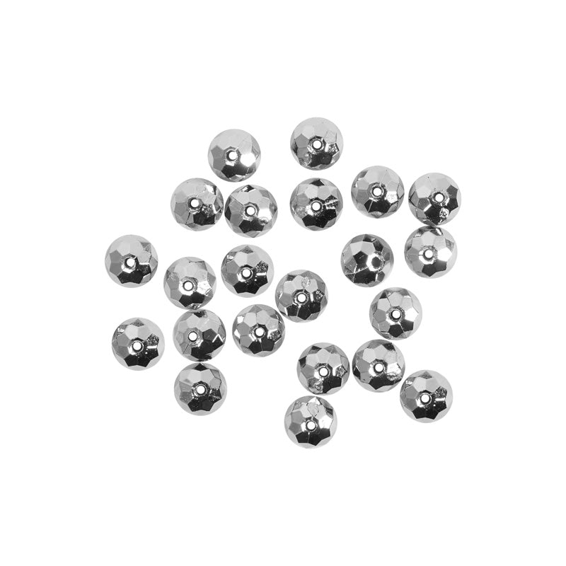 BEAD 8MM PLASTIC FACETED SILVER 20G