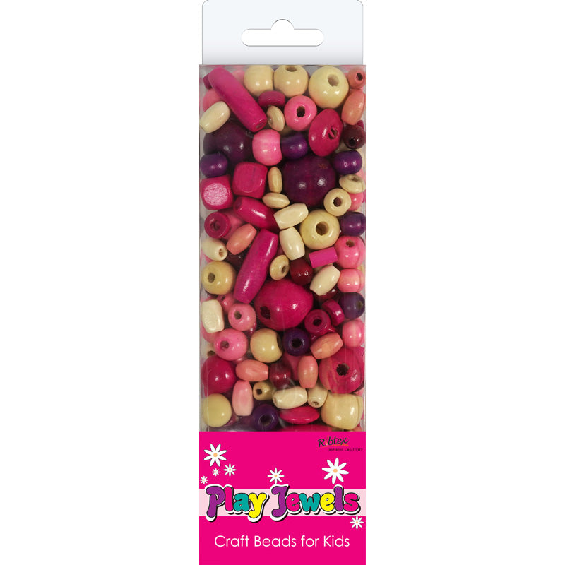 PLAY JEWEL BEAD PACK WOOD PINK WHITE 55G