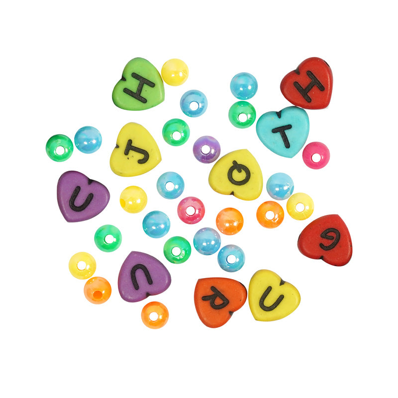 Designed with little fingers in mind, the Craft Beads for Kids range offers a wide variety of colourful and fun beads and string, catering for lots of different abilities. Colour: White, Assorted Composition: Plastic Country Of Origin: Made In China Dimensions: 12mm heart beads, 6mm beads, 1mm thread Safety Information: Not suitable for children under 4. Please supervise younger children when using. **Despite every effort to provide accurate images of each product, actual colours and design may vary slightly due to different device screen settings *** Please note beads are packed randomly. We cannot guarantee that each letter of the alphabet will be included, or the quantity of any particular letters.