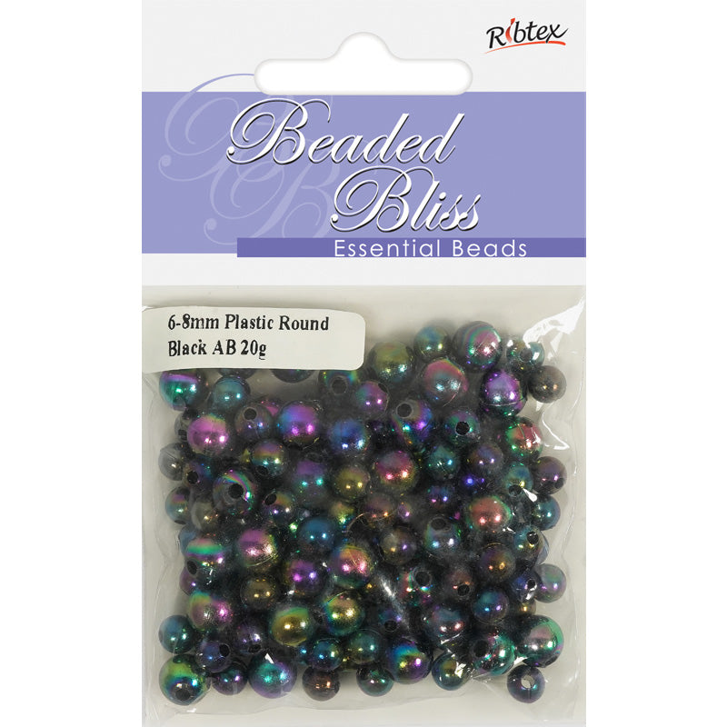 BEAD PLASTIC ROUND 6 8MM BLACK AB 20G