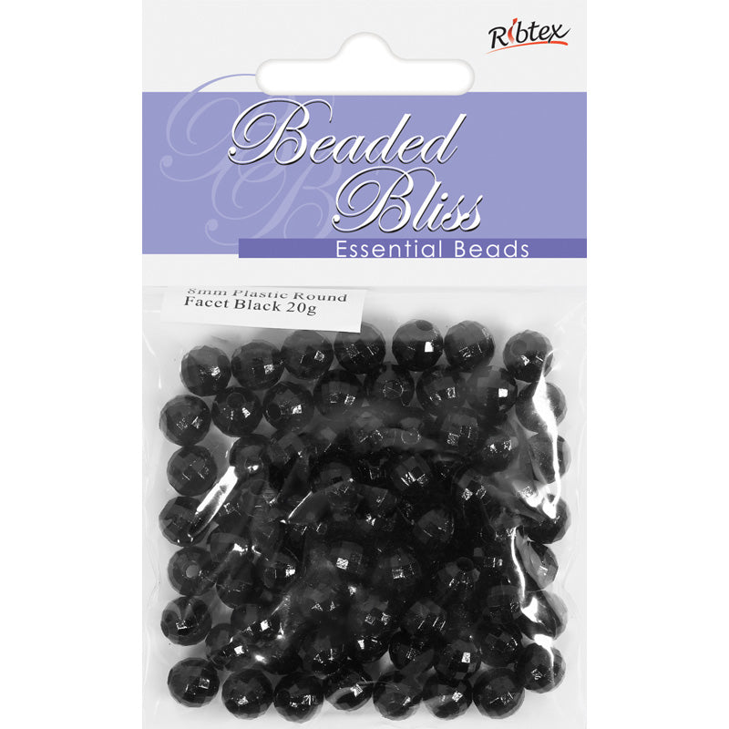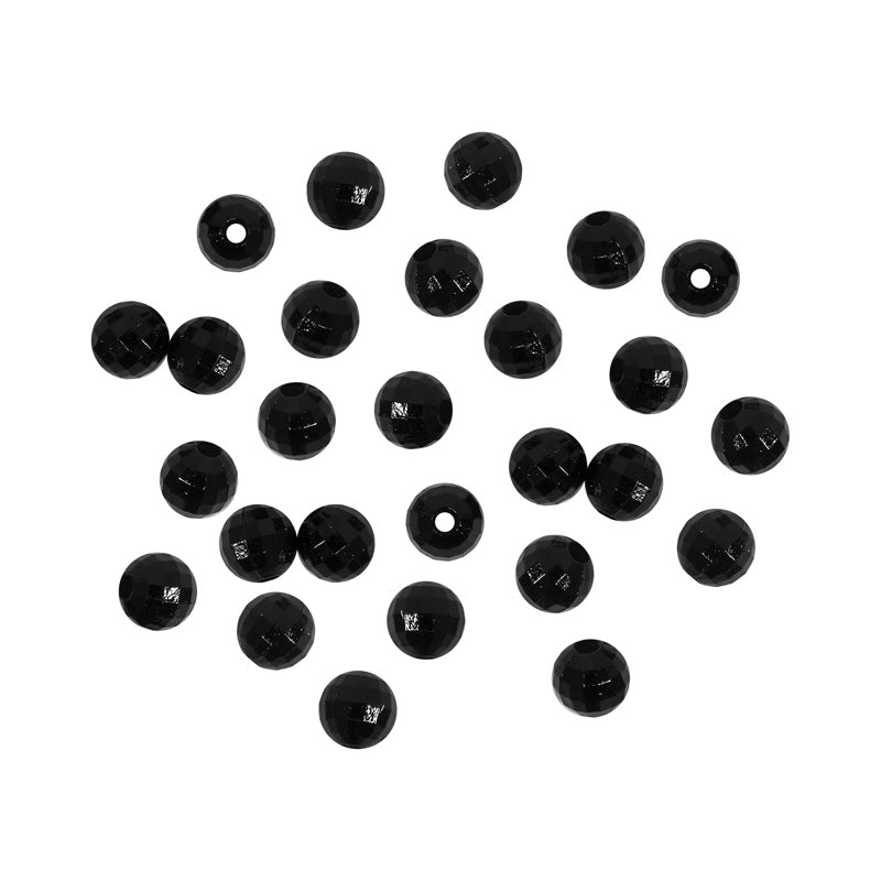 BEAD PLASTIC ROUND FACET 8MM BLACK 20G