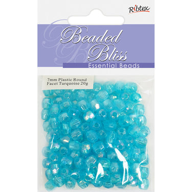 BEAD PLASTIC ROUND FACETED 7MM TURQUOISE