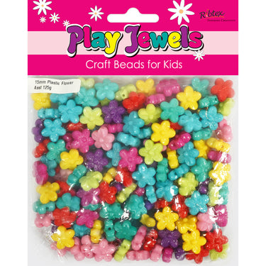 BEAD VP 15MM FLOWER BRIGHT ASST 125G