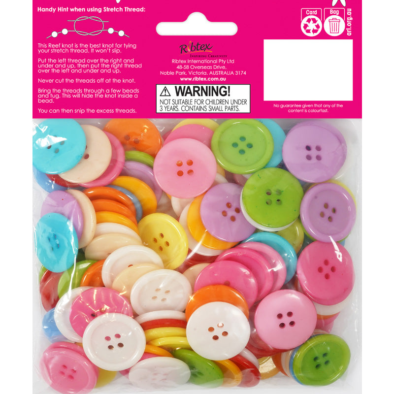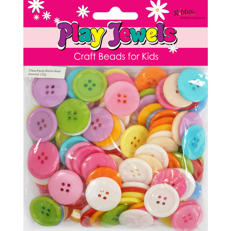 BEAD VP 25MM PLASTC BUTTON RND ASST 125G