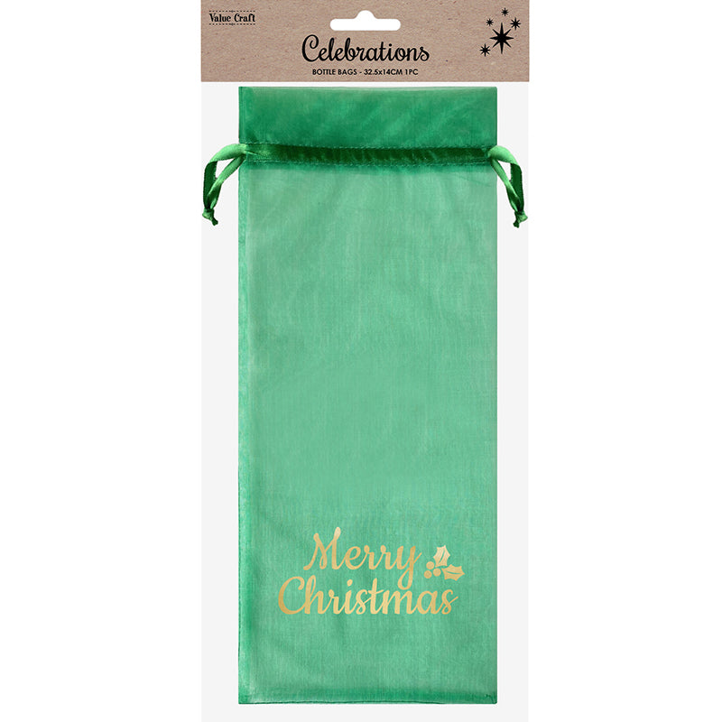 XMAS BOTTLE BAG 32.5X14CM ORG GREEN 1PC