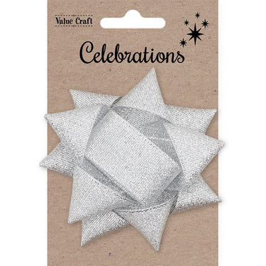 XMAS BOW 9.5CM SILVER METALLIC 1PC