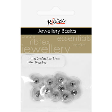 EARRING COMFORT STUDS SILVER 15MM 10PC