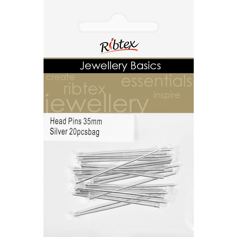 FINDINGS HEAD PINS SILVER 35MM 20PC