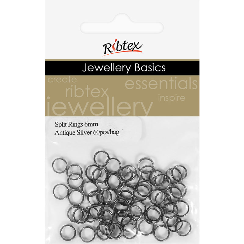 SPLIT RINGS ANTIQUE SILVER 6MM 60PC