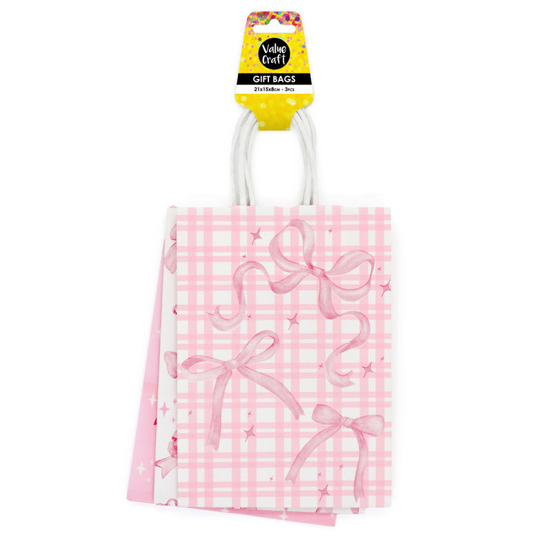 GIFT BAGS 21X15CM MIXED BOWS 3PC
