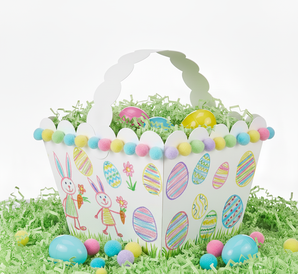 Set of 12 pre-cut Baskets , White FSC Card Easy to decorate, paint, embellish. Great for classroom craft.