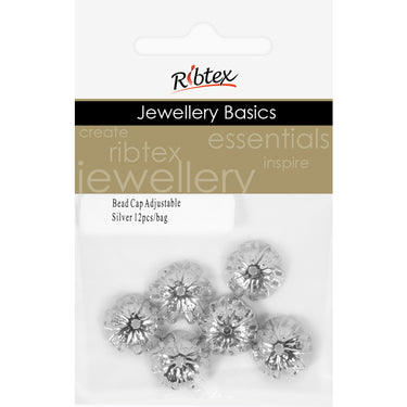 BEAD CAPS ADJUSTABLE SILVER 12PC
