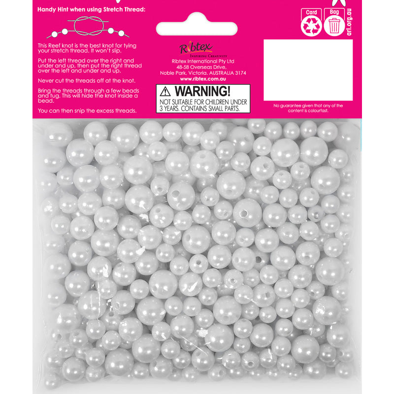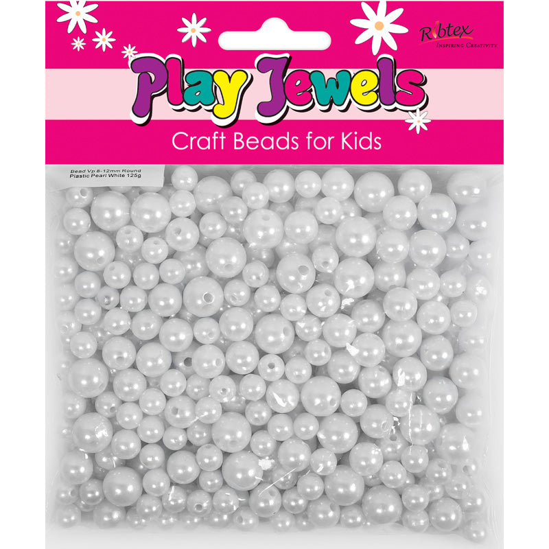 BEAD VP 8 12MM RND PLAST PEARL WHT 125G