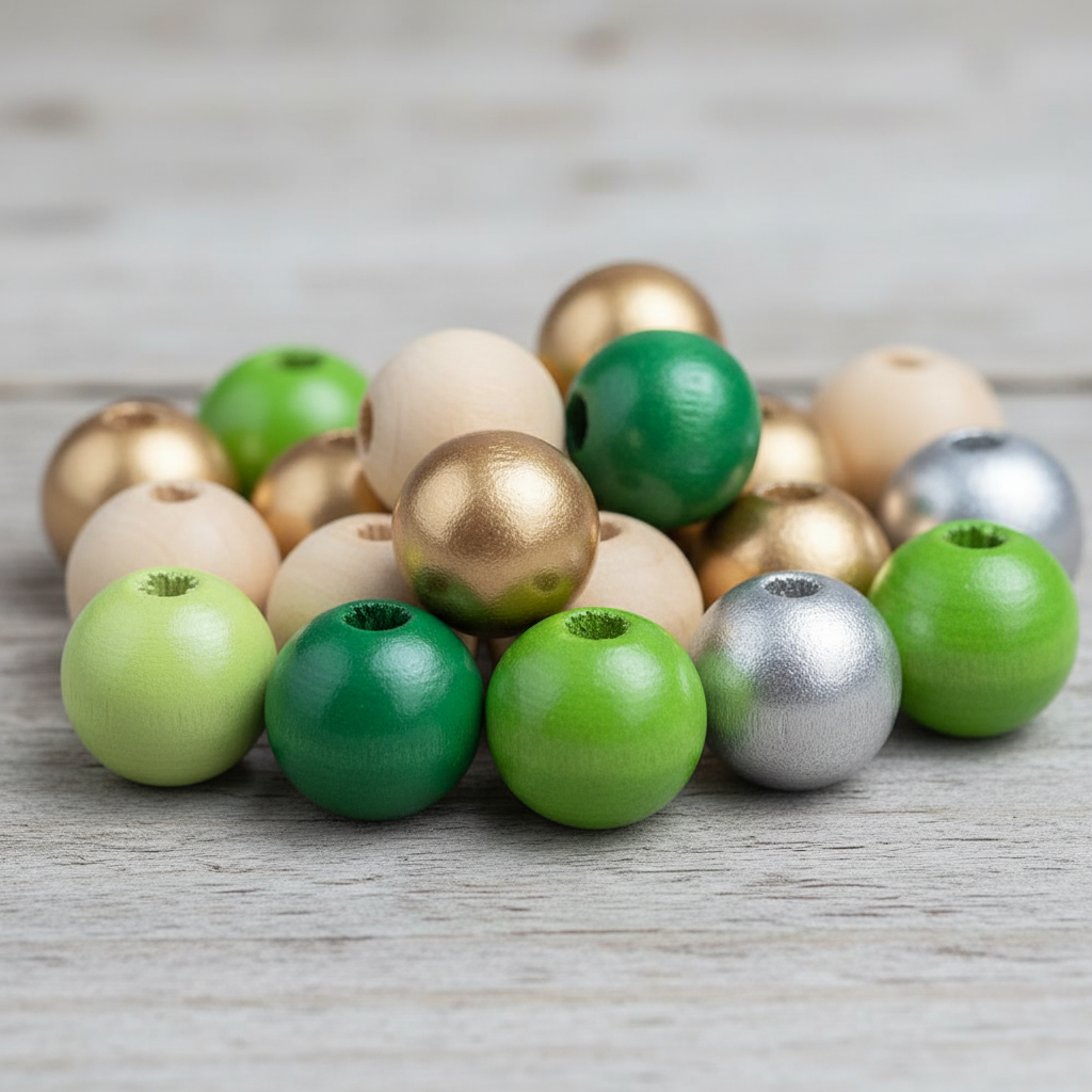 BEAD WOOD 16MM RND GREEN MULTI 30PC
