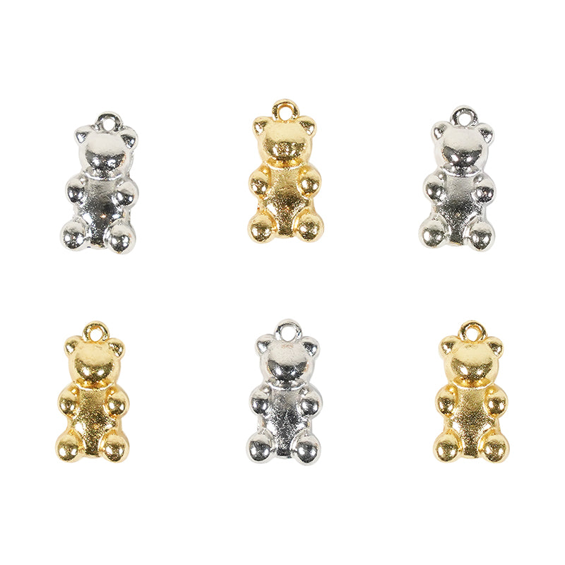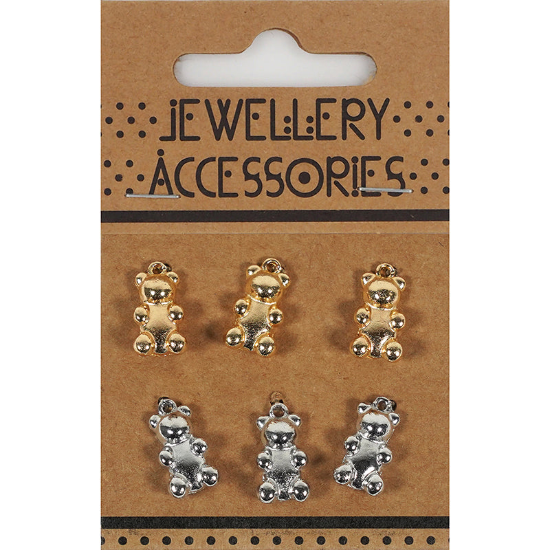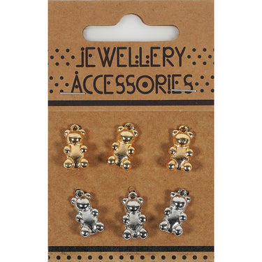 CHARM CARD 6PC GOLD SILVER TEDDY BEARS