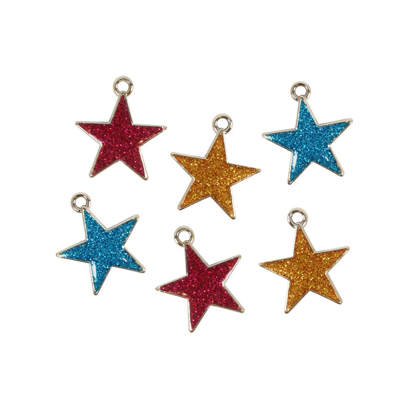 JF CHARM 25MM GLITTER STAR ASST 6PC