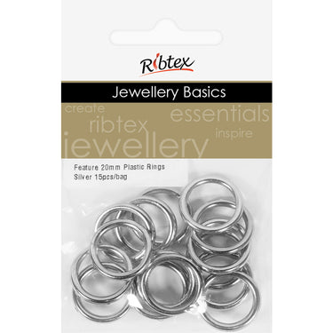 Jf Feature Plastic Rings 20Mm Slv 15Pcs