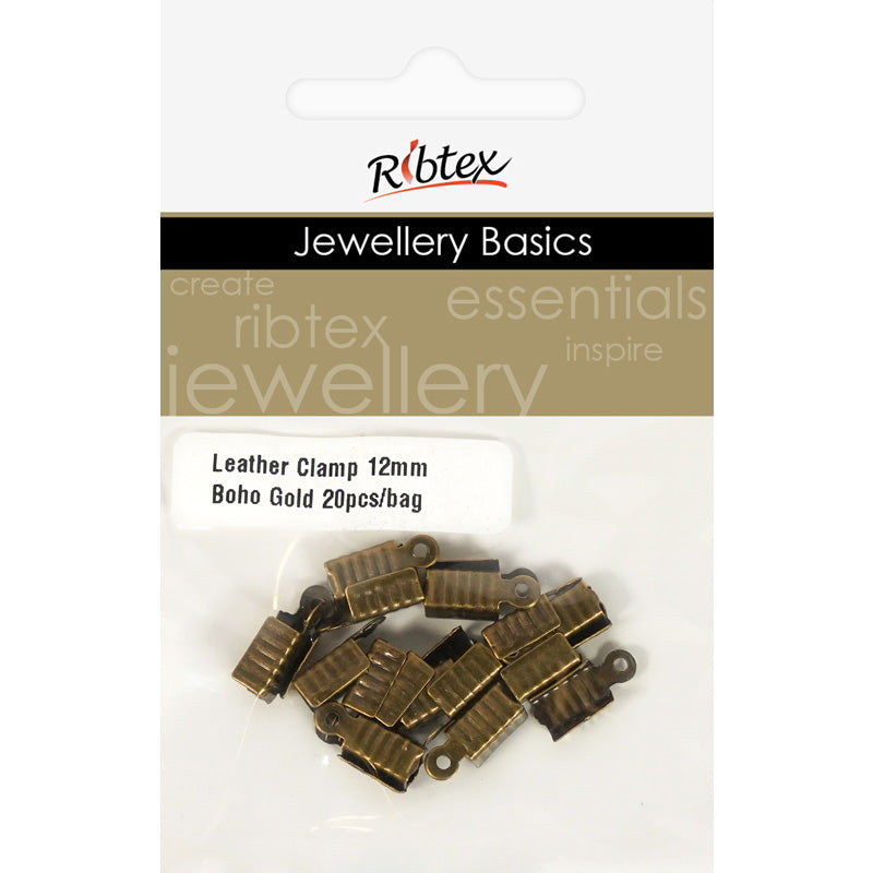 LEATHER CLAMP BOHO GOLD 12MM 20PC