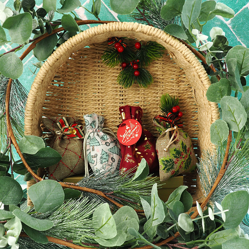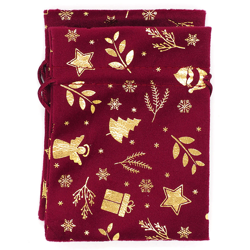 XMAS BAG VELVET 10X12.5CM GOLD LEAF 2PC