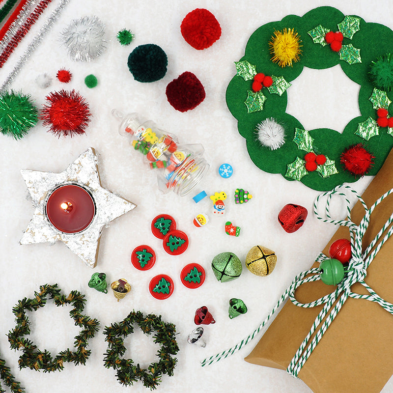 XMAS CHENILLE AND POM POM KIT 76PCS