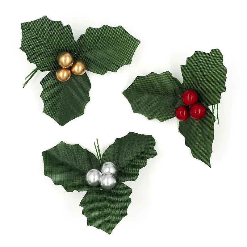 XMAS MINI HOLLY LEAVES MULTI 9PC